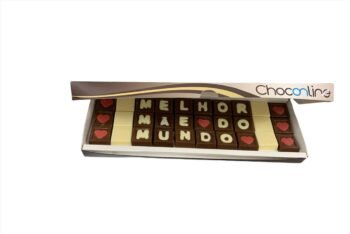 Caixa de chocolate ao leite nobre, com frases.