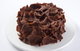 Bolo com massa de pão de ló de chocolate, recheado e cober...